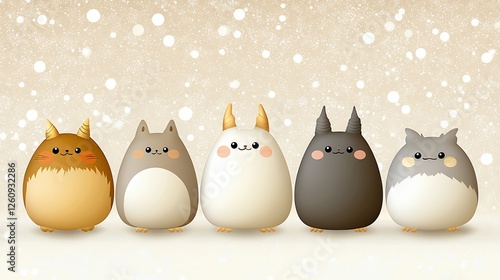 Cute Cartoon Animals Row On Snow Background