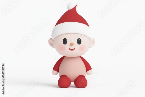 Cute cartoon character, sitting, wearing Santa hat and clothes