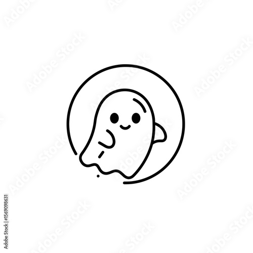 Cute cartoon ghost character smiling inside a circular outline