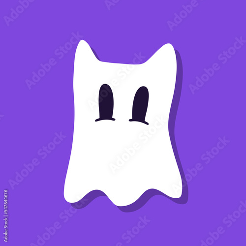 Cute cartoon ghost on purple background.