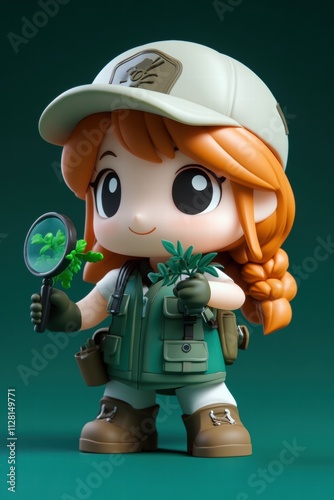 Cute Cartoon Girl Botanist Exploring Nature
