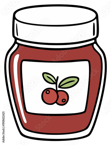 Cute Cartoon Jar of Cherry Jam with a Simple Label Illustration