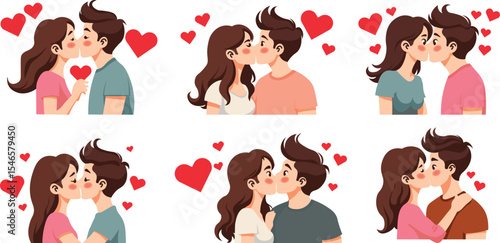 cute cartoon Kissing vector shape with hearts and sparkles around.