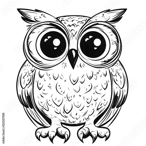 Cute Cartoon Owl with Blank Outline for Coloring and Kids Crafts