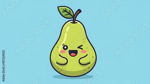 Cute cartoon pear with smiling face.