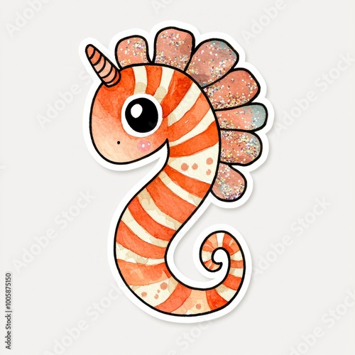 Cute Cartoon Sea Horse with Glitter Fin Illustration
