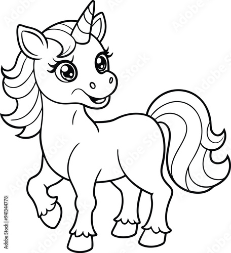 Cute Cartoon Unicorns isolated on white background. Cute unicorn line and color. Vector illustration for coloring books