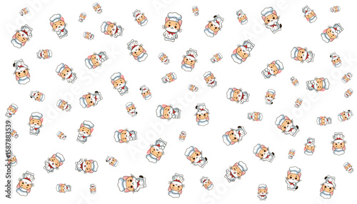 Cute Chef Cat Cartoon Pattern Vectors Set