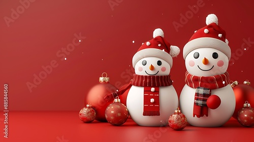 cute christmas doll with copy space text red background