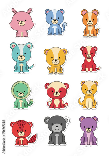 Cute Colorful Flat Vector Bear Animal Stickers Collection