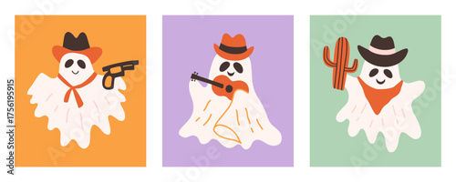 Cute Cowboy Ghost Cartoon Halloween Set