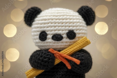 Cute Crochet Panda Holding a Stick