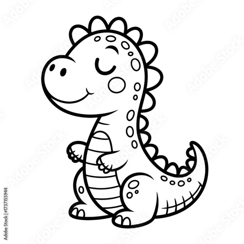 Cute Dinosaur Coloring Page for Kids: Friendly Reptile, Fun, and Imaginative Scene Printable
