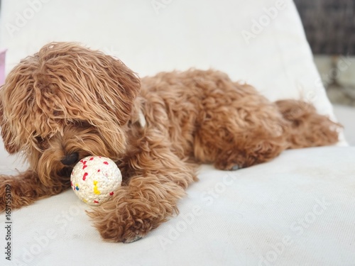 Cute Dog Playing with Ball Outdoors on a Sunny Day.