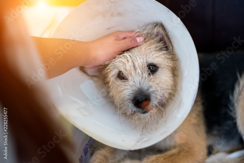 Cute dog wearing a funnel collar
