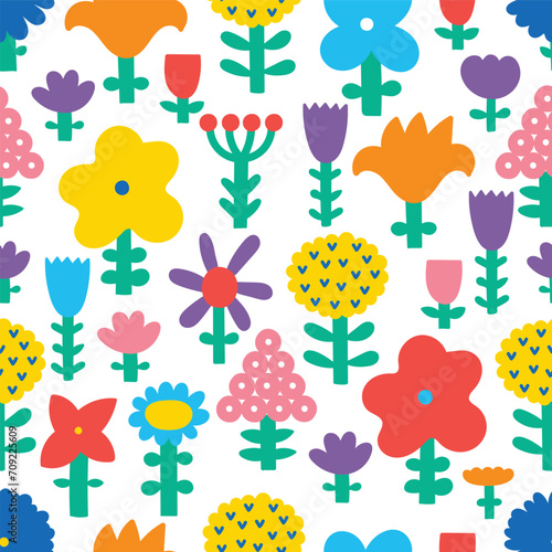 Cute floral seamless pattern with spring flower. Vintage flowers illustration. Template for fashion prints.