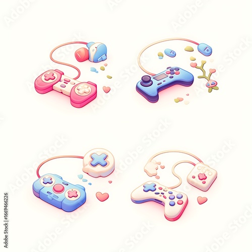 Cute Game Controller Set Whimsical Gaming Icons for a Playful aesthetic