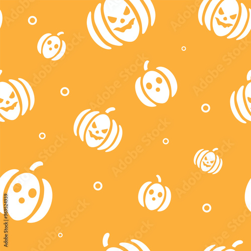 Cute halloween pattern with pumpkins on yellow background. Print for fabric texture, decoration, wrapping paper. Vector illustration