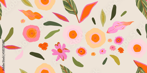 Cute hand drawn colorful artistic flowers print. Modern botanical pattern. Fashionable template for design. Cartoon style.