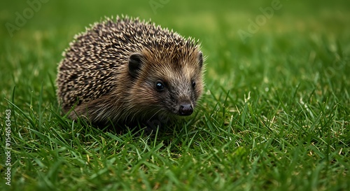 Cute Hedgehog Walking on Green Grass in Natural Outdoor Setting
