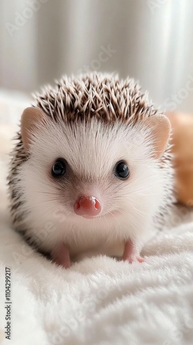 Cute hedgehog with soft fur looking directly at the camera in a bright setting
