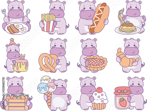 Cute hippo vector icon. Funny baby hippo animal series stock illustration. life of fluffy hippo designs.