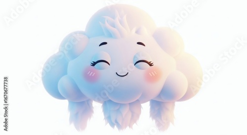 Cute kawaii cloud character with happy face and blush