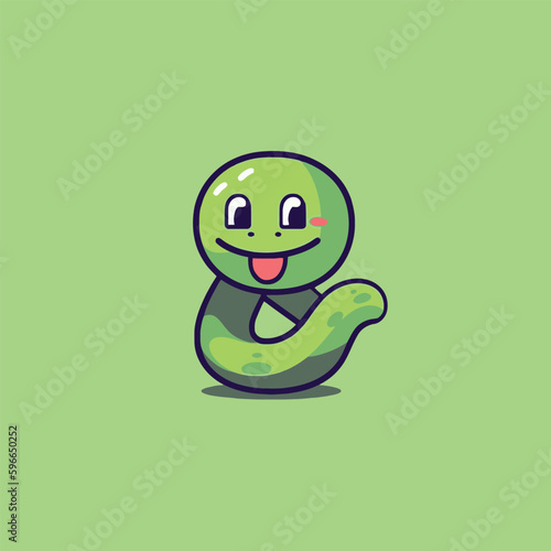 Cute kawaii snake chibi mascot vector cartoon style