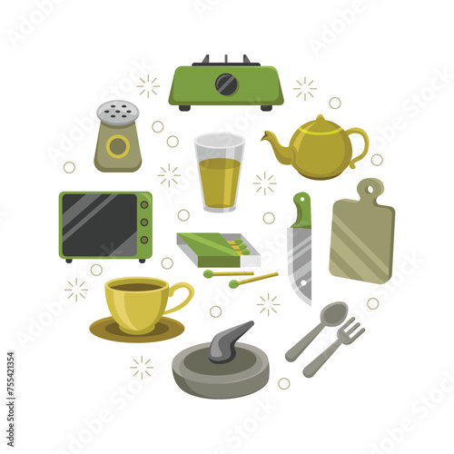Cute kitchen utensils doodle sticker set vector