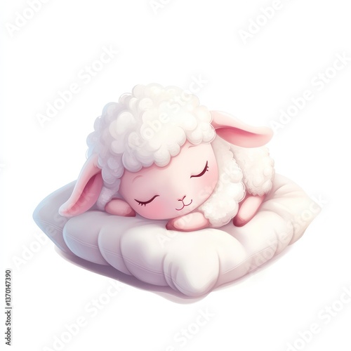 Cute lamb sleeping soundly on a pillow