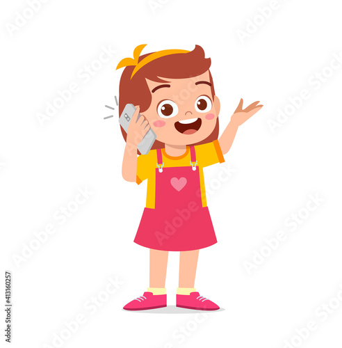 cute little girl talk using mobile phone