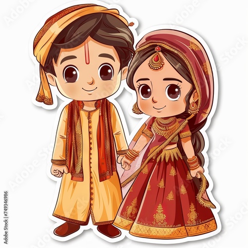 cute little wedding couples with greeting text sticker " ai generated "