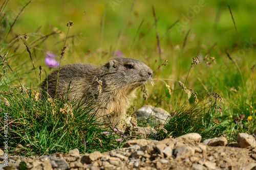 Cute marmot in agricultural field