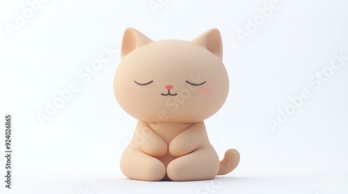 Cute Minimalist Cat Figurine Meditating in a Calming Atmosphere