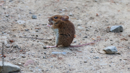 cute mouse looking for food, eating