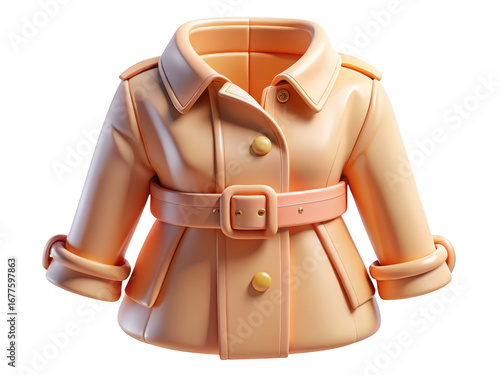 Cute peach color trench coat with belt fashionable stylish clothing accessory 3d illustration isolated on transparent background