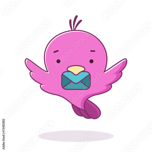 Cute pink bird with letter. Vector illustration. Logo design tem