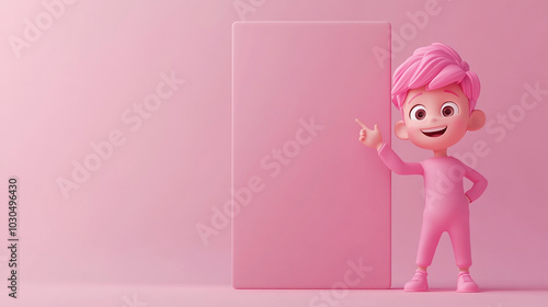 Cute Pink Cartoon Boy Pointing to Blank Sign Marketing Advertisement Product Mockup