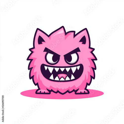 Cute Pink Cartoon Furry Cat with a Playful Look