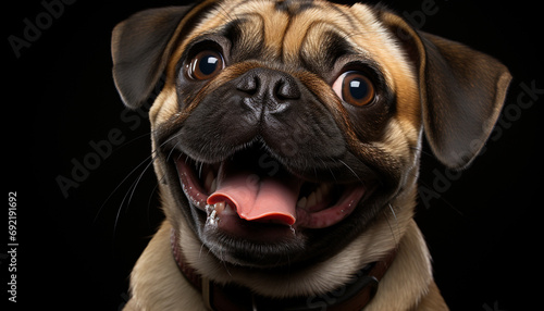 Cute puppy portrait, close up, looking at camera, black background generated by AI