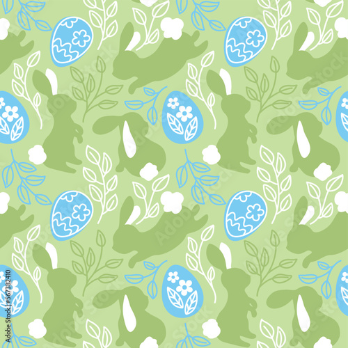 Cute rabbits on green background. Easter holiday. Seamless pattern. Vector.