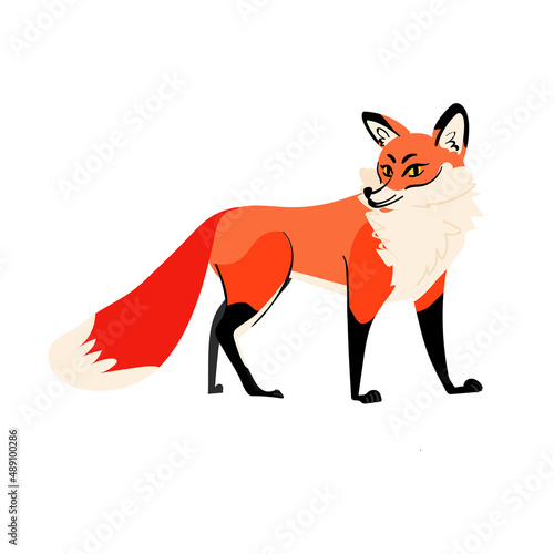 Cute red fox isolated on white background. Cute animal character flat vector illustration