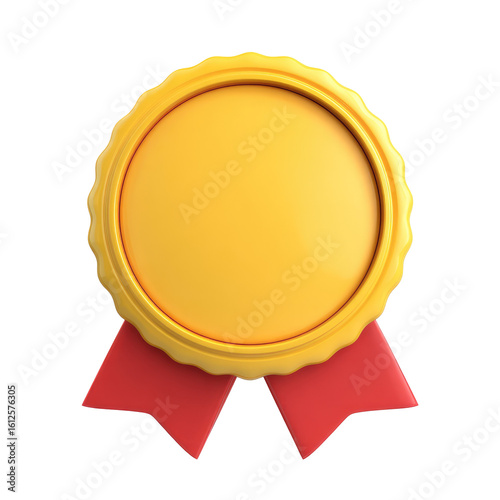 Cute round yellow cartoon medal with red ribbon ideal for awards and recognition in various creative projects