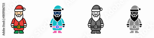 Cute Santa Claus standing in simple flat Christmas illustration icon set multiple style collection