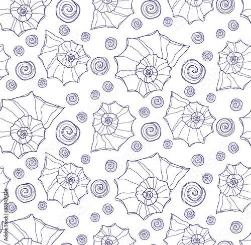 Cute seamless pattern with hand drawn shells. Ocean background. Vector