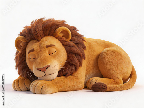 Cute Sleeping Lion Stuffed Toy on White Background