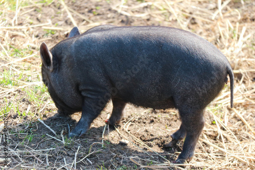 cute small black mini pig close up