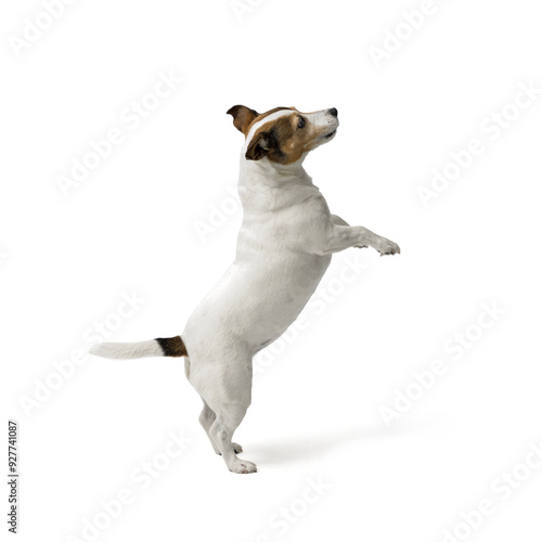 Cute small dog Jack Russell terrier on white background