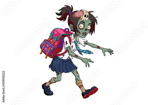 Cute Zombie Schoolgirl Illustration Spooky Kawaii Undead Character Design