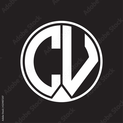 CV Logo monogram circle with piece ribbon style on black background